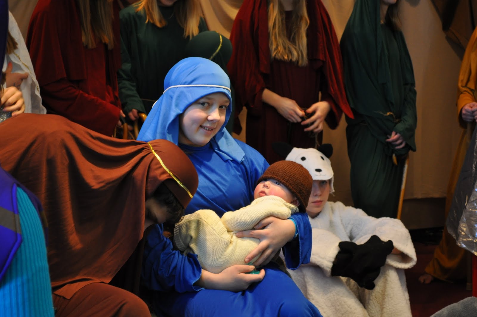 Jackson and Kate participated in our church Christmas program. Kate sang and Jackson played the part of baby Jesus. It was such an honor to be asked for Jackson to play such an important role and he did a great job! I was so worried he was going to cry during it, but he didn’t. He slept and woke up at the very end. It was perfect! And Kate did a good job singing 🙂