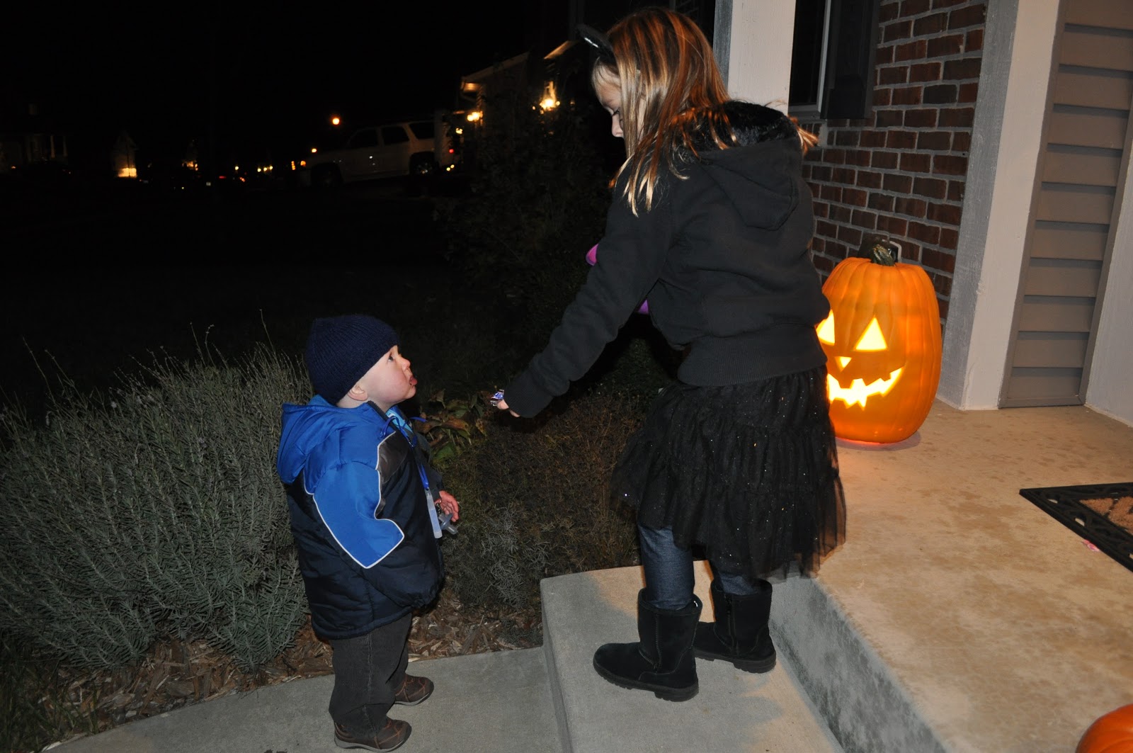 This was one of the two houses Jackson went to. The rest of the time he sat in the stroller eating candy or pretzels 🙂